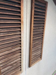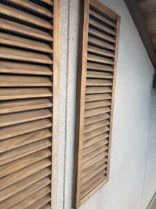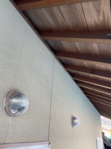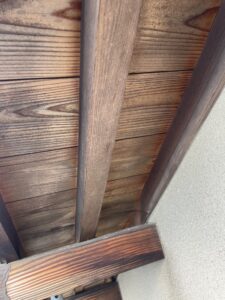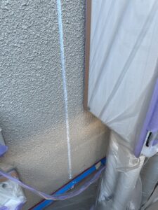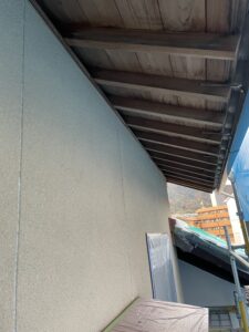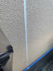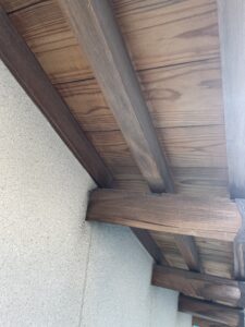 作業内容は、錆止めを塗ったところの養生と、目地のコーキングと軒の木の下地処理をしました。
