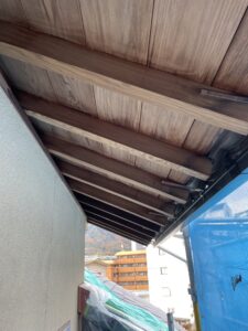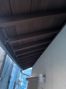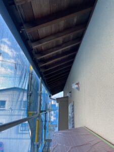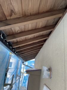 今日は昨日の続きで軒の下地処理から上塗りをしました。 キシラデコールという材料を使いました! キシラのウォールナットを塗ってます 下地処理前 下地処理後 キシラ塗装後 ちゃんと下地処理したかいがありました!! 色むらも無くきれいになりました!! 下地で全然仕上がりが違いますから、大事なことですね!