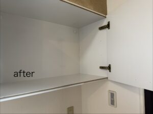 今年一発目のお仕事は、広島市内にあるマンションの1室のキッチン棚内部の塗装でした。