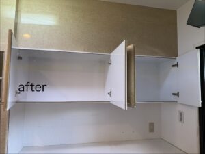 今年一発目のお仕事は、広島市内にあるマンションの1室のキッチン棚内部の塗装でした。
