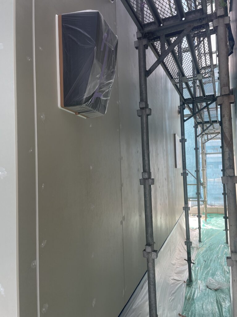 月末から新築の工事に入らせて頂いてます。 今回は吹付けで外壁を仕上げていきます。 パターンはゆず肌で仕上げます。 before