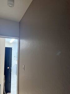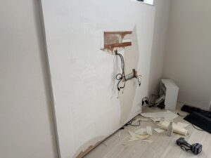 4月頭に少し仕事が空いたので前からやろうと思ってた、テレビの裏と妻がやってほしいと言ってた階段前の壁を塗装しました。